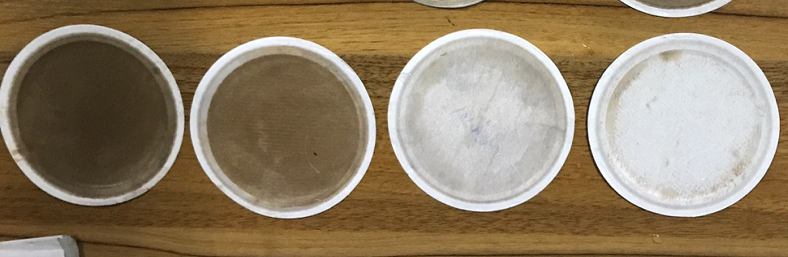 figure 2: A2 test dust on JPL series string wound and one of the top brand melt blown.